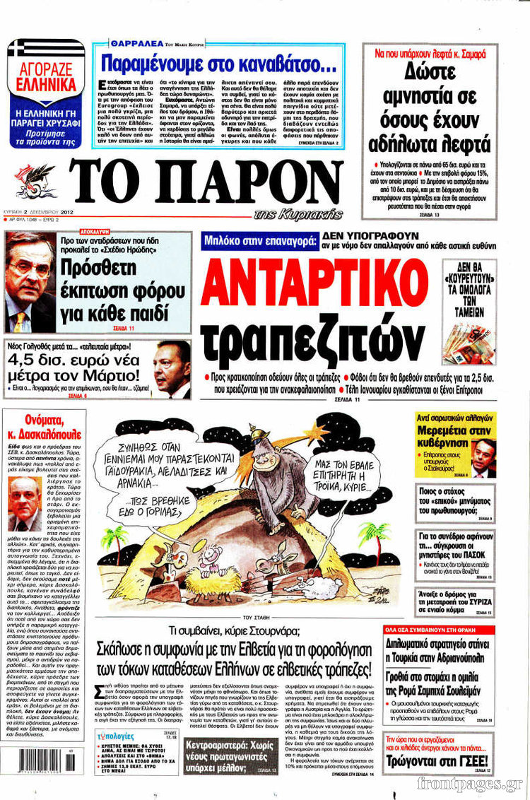 Το Παρόν της Κυριακής για πρώτη φορά μετά από πολλά χρόνια χωρίς το "Ευαγγέλιο" του "κομμαντάτε" Μάρκου Μουζάκη (δεν άντεξε άλλο ο άνθρωπος την κοροϊδία...)