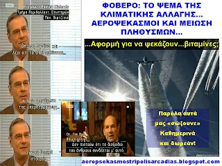 Κανένας επιστήμονας δεν πιστεύει ότι ο άνθρωπος ευθύνεται για την κλιματική αλλαγή. Αντιθέτως υπάρχουν πολιτικοί και δημοσιογράφοι, κάθε άλλο παρά ειδικοί επιστήμονες, που υποστηρίζουν το αντίθετο, για να τρομοκρατούν τον κόσμο και να αναλαμβάνουν πρωτοβουλίες όπως είναι οι αεροψεκασμοί!