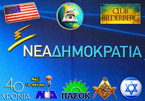 Δὲν ἀγνοοῦμε ὅμως ὅτι πολλά ἐξέχοντα στελέχη τῆς Ν.Δ. ἔχουν ἄρρηκτες σχέσεις μὲ μασσωνικὲς στοές, τὸν Σιωνισμό καί τὴν Νέα Τάξη Πραγμάτων («εἶναι φίλοι τῶν μασσώνων» ὅπως εἶχε πεῖ ὁ νεοδημοκράτης Ὑπουργὸς Δημοσίας Τάξης Δένδιας).
