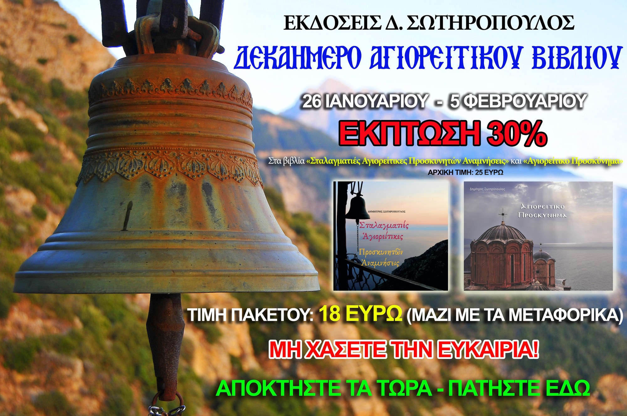 ΜΕΓΑΛΗ ΠΡΟΣΦΟΡΑ: Δεκαήμερο Αγιορείτικου Βιβλίου με Έκπτωση 30% !!!