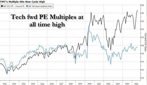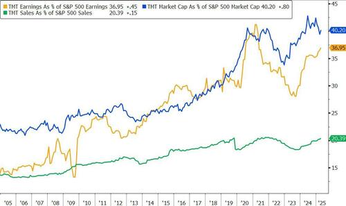 Το μερίδιο του TMT στη συνολική κεφαλαιοποίηση του S&P 500 βρίσκεται πλέον σε επίπεδα αντίστοιχα με εκείνα της dot-com φούσκας.